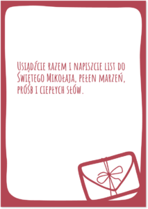- Kalendarz grudniowy (26 kart z zadaniami, 24 koperty, 24 naklejki z numerami)